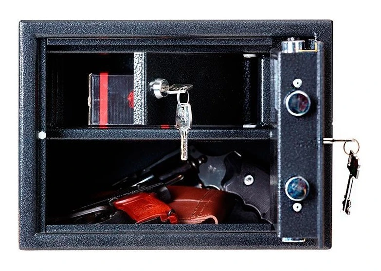 — В сейф встроен трейзер размерами 201 х 294 х 185 мм – патронное отделение, снабжённое собственным ключом.